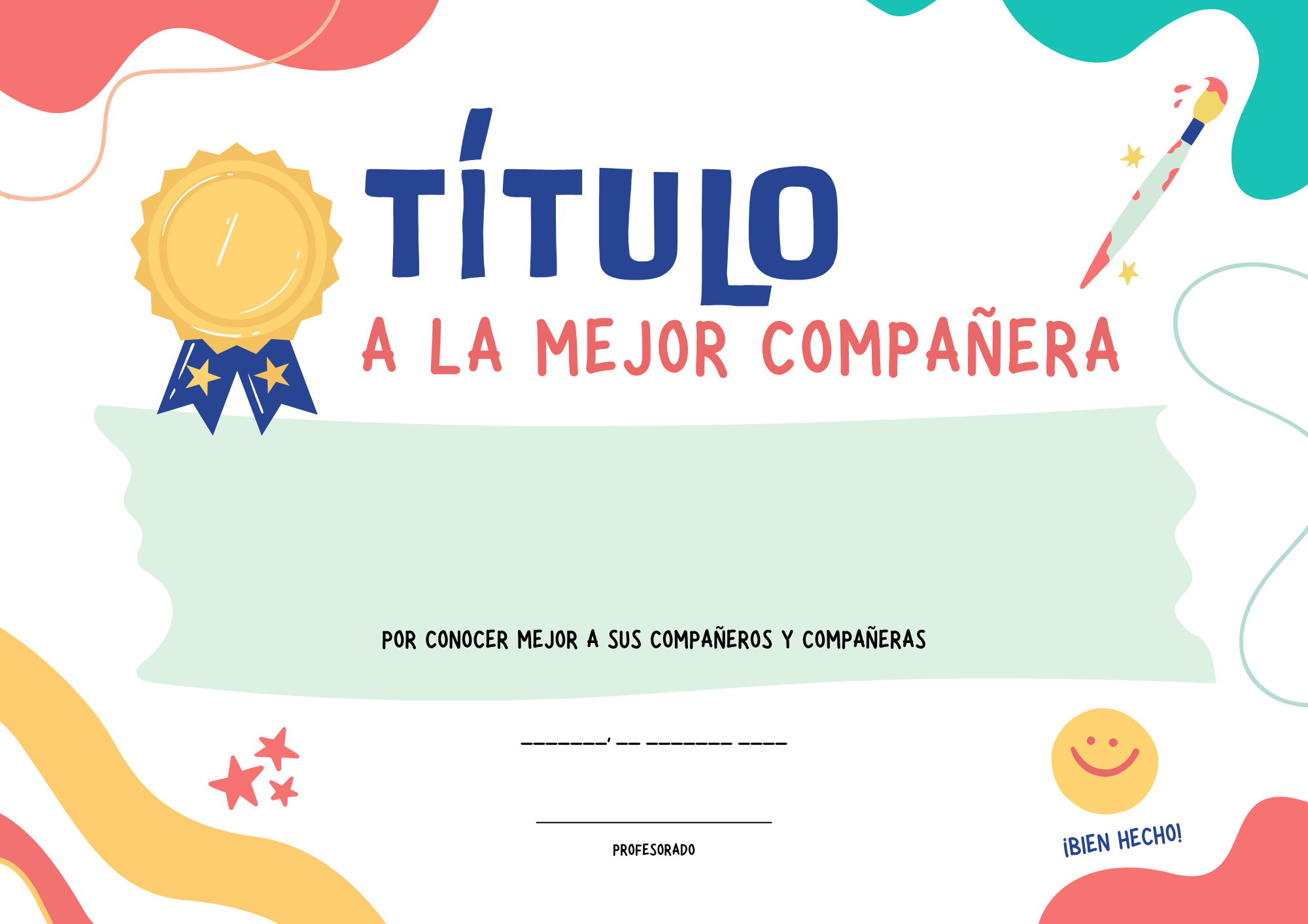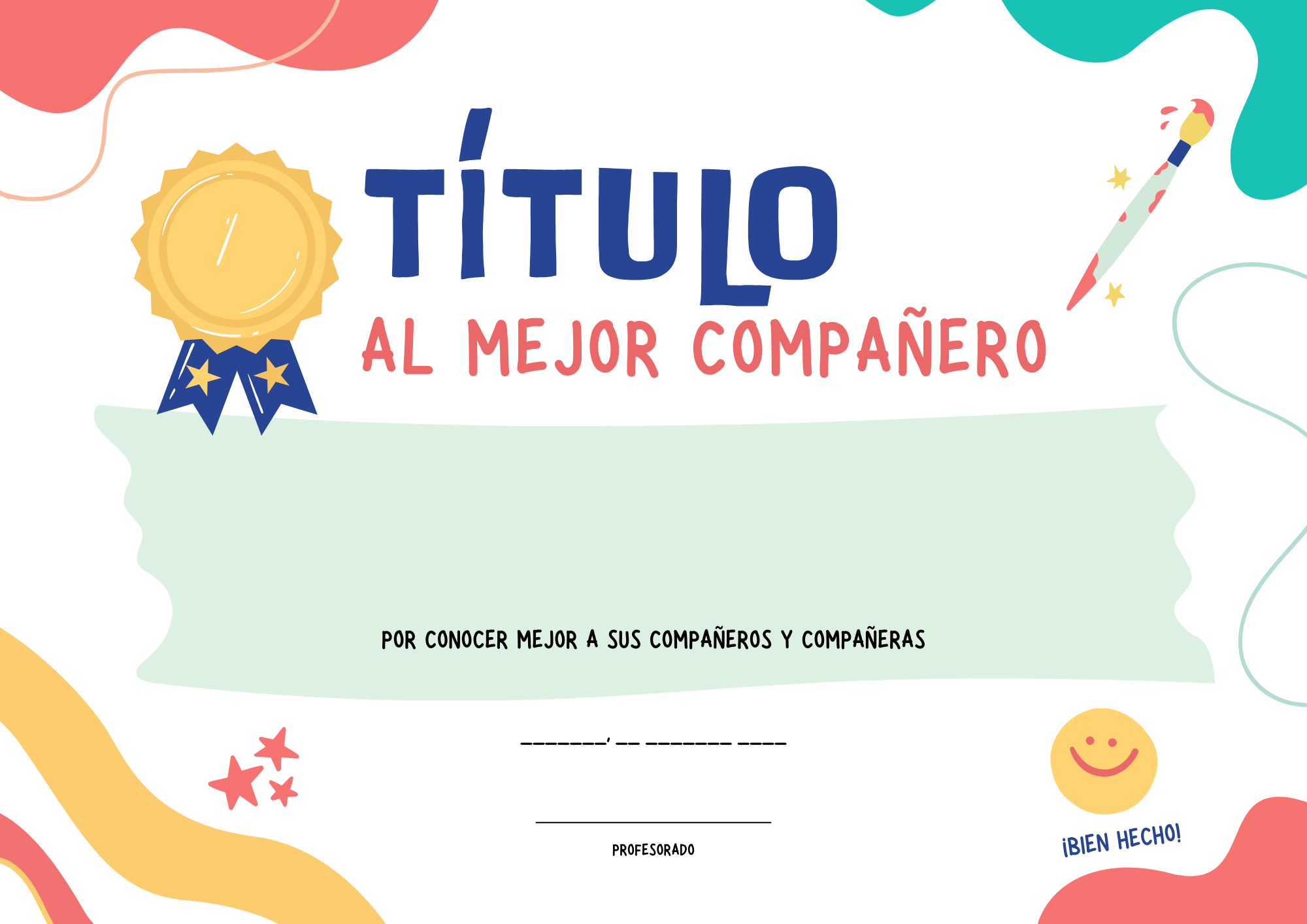 Imprimir los cartones y el título de "El compañero del año".
